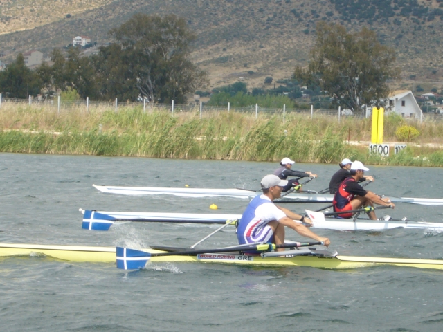 • 強風の中、ギリシャチームと併漕トレーニング。