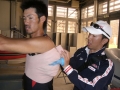 • (写真 練習後はアイシングをして筋肉の熱をとります)