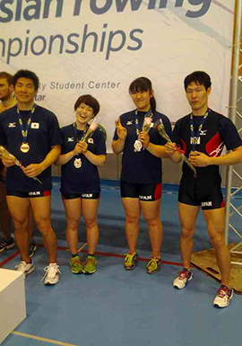 2014(平成26)年3月6日(木)と7日(金)にカタール・ドーハのハマドビンカリファ大学学生センターで開催されている「第11回アジアマシンローイング選手権大会」(主催:アジアボート連盟 = ARF)で、日本勢は団体種目「オープン女子ダブルスカル」で金メダルを獲得しました。本大会はアジア13カ国から91選手が出漕しています。